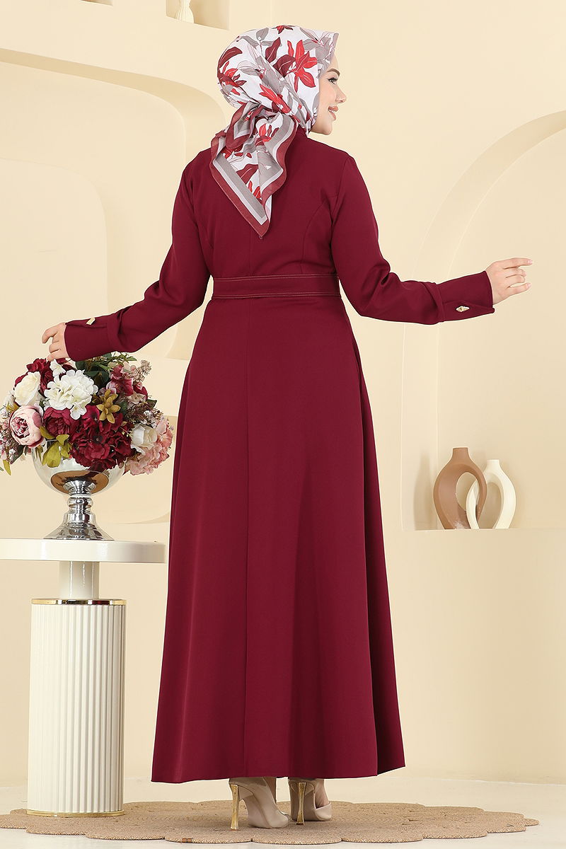 Gold Fermuarlı Dabıl Ferace 2786SL432 Bordo