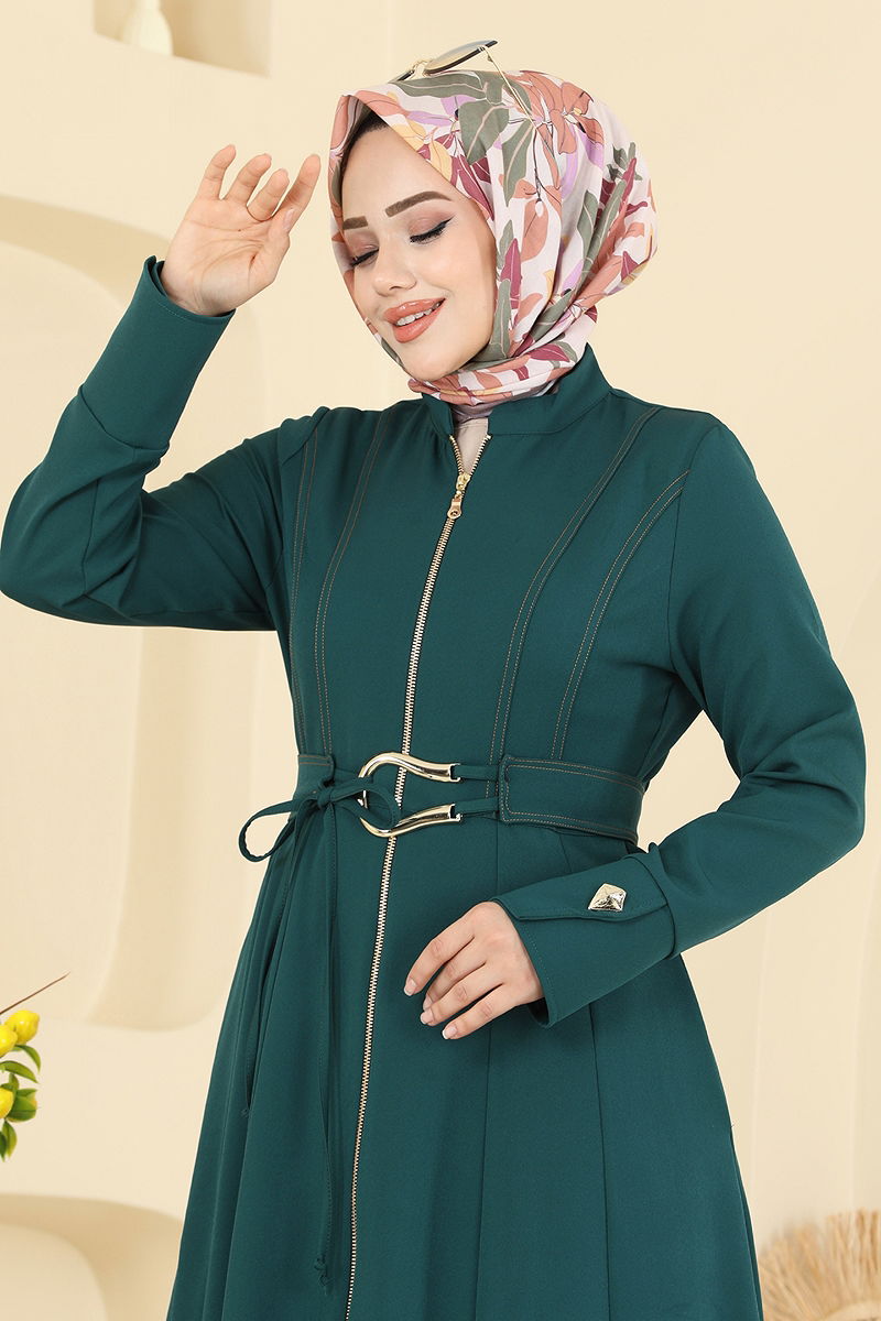 Gold Fermuarlı Dabıl Ferace 2786SL432 Petrol