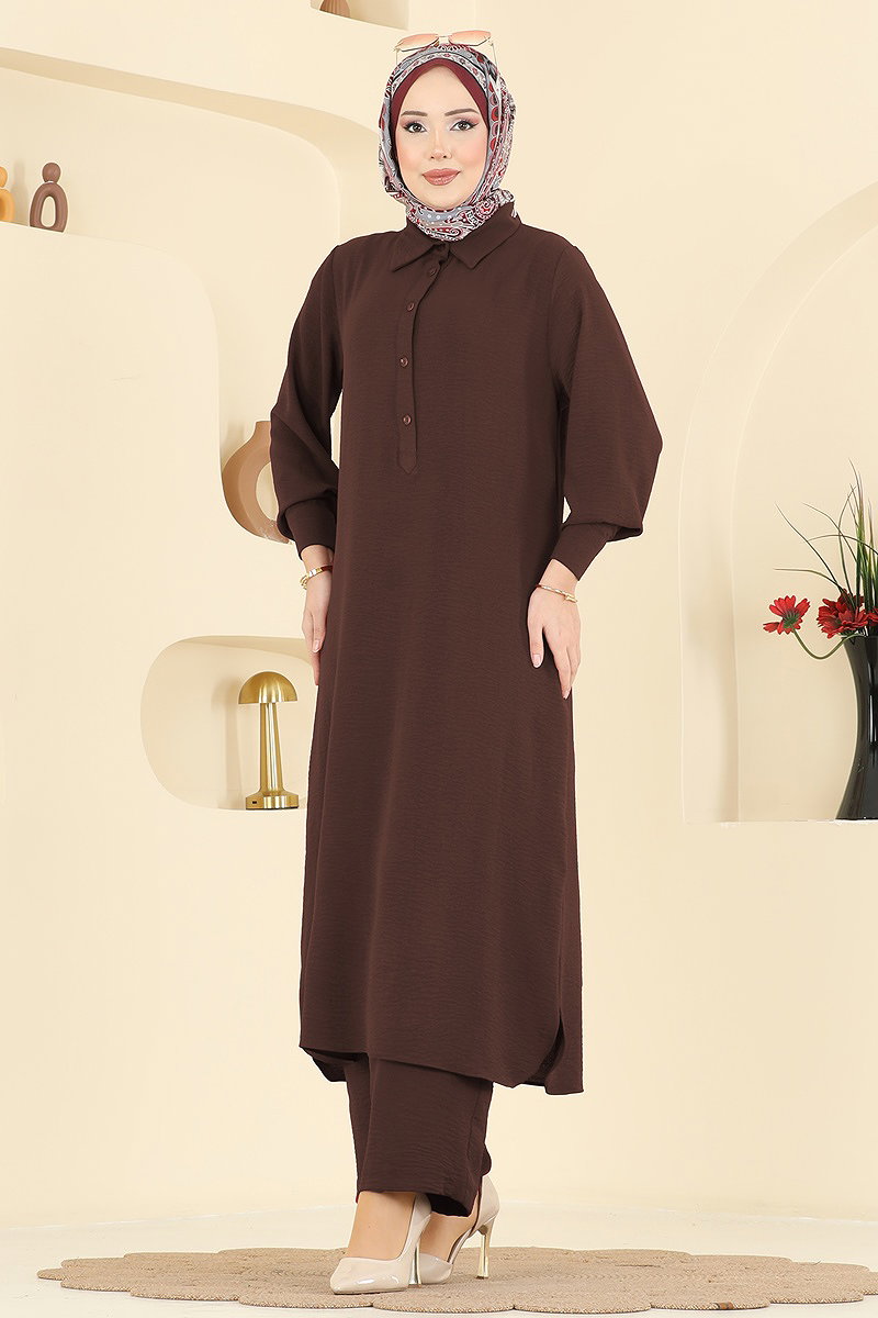 Gömlek Yaka Aerobin Takım Kahve