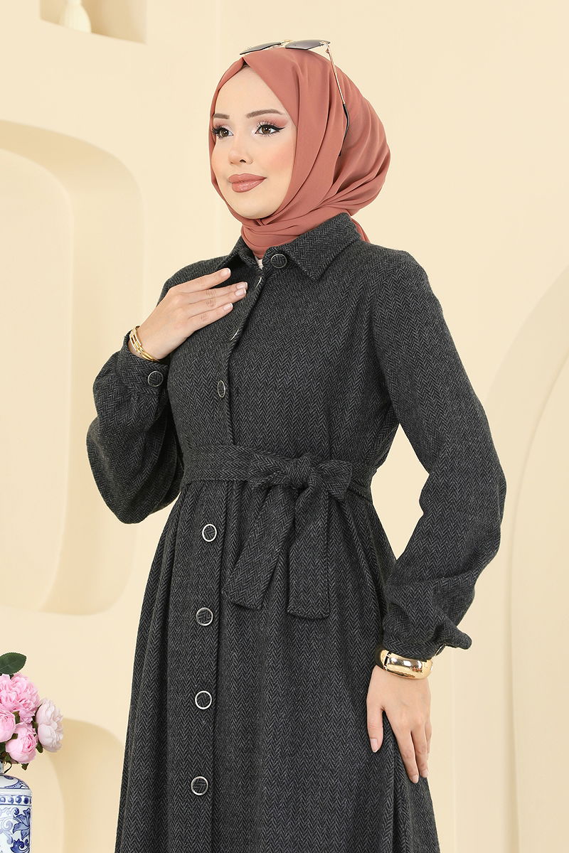 Gömlek Yaka Balıksırtı Elbise Antrasit