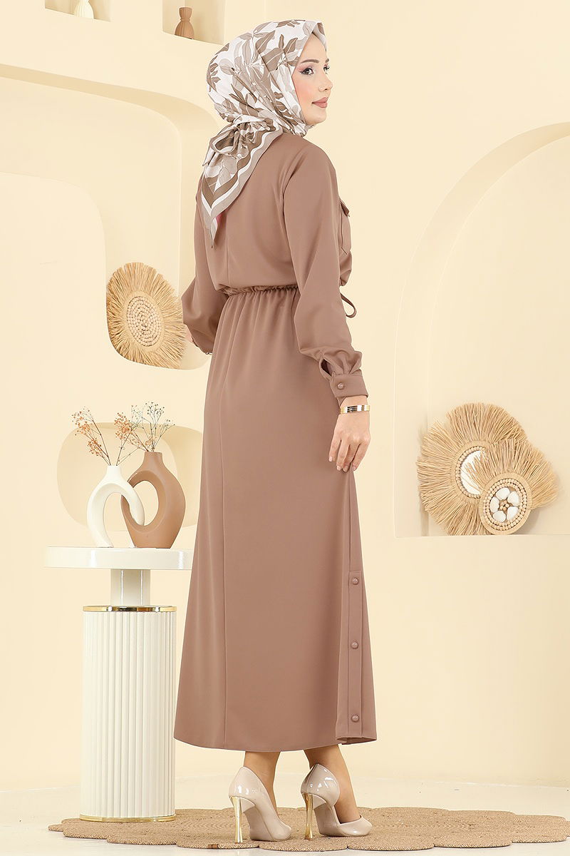 Gömlek Yaka Dabıl Elbise 2744SL432 Latte