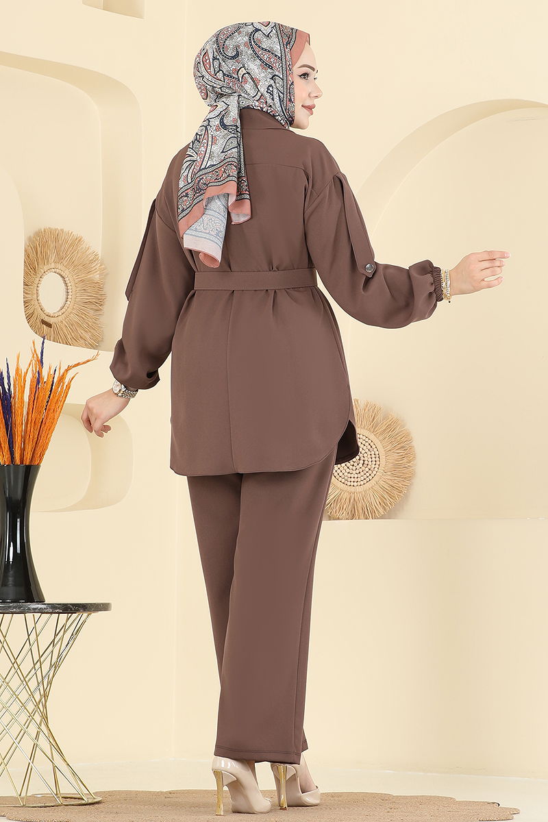 Ürün Özelliği : Yeni sezon tesettür moda ürünüdür. Ürün Gömlek yakadır. Ürün Önden düğmelidir. Üründe kemer köprüsü bulunmamaktadır. Apolet düğme aksesuardır. Kemer ürüne dahildir, isteğe bağlı kullanılmayabilir. Tunikte cep mevcuttur. Pantolon beli lastiklidir. Manşet lastiklidir.Konsept fotoğraf çekimlerinden dolayı üründe ton farklılığı olabilir.