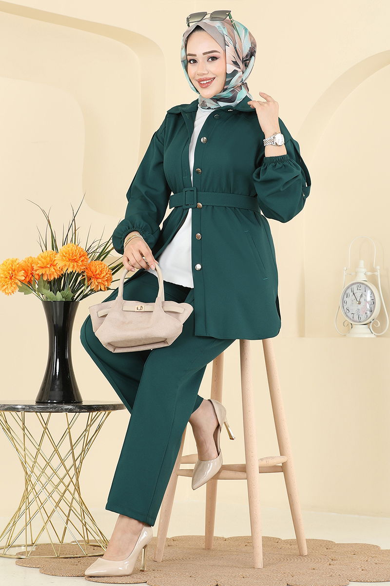 Ürün Özelliği : Yeni sezon tesettür moda ürünüdür. Ürün Gömlek yakadır. Ürün Önden düğmelidir. Üründe kemer köprüsü bulunmamaktadır. Apolet düğme aksesuardır. Kemer ürüne dahildir, isteğe bağlı kullanılmayabilir. Tunikte cep mevcuttur. Pantolon beli lastiklidir. Manşet lastiklidir.Konsept fotoğraf çekimlerinden dolayı üründe ton farklılığı olabilir.