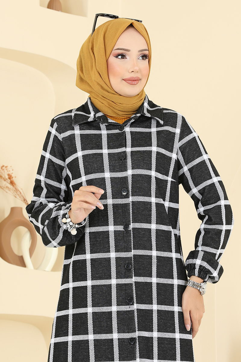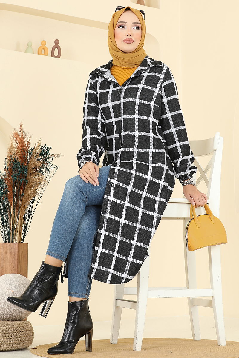 Gömlek Yaka Ekose Tunik Desen 4 Siyah