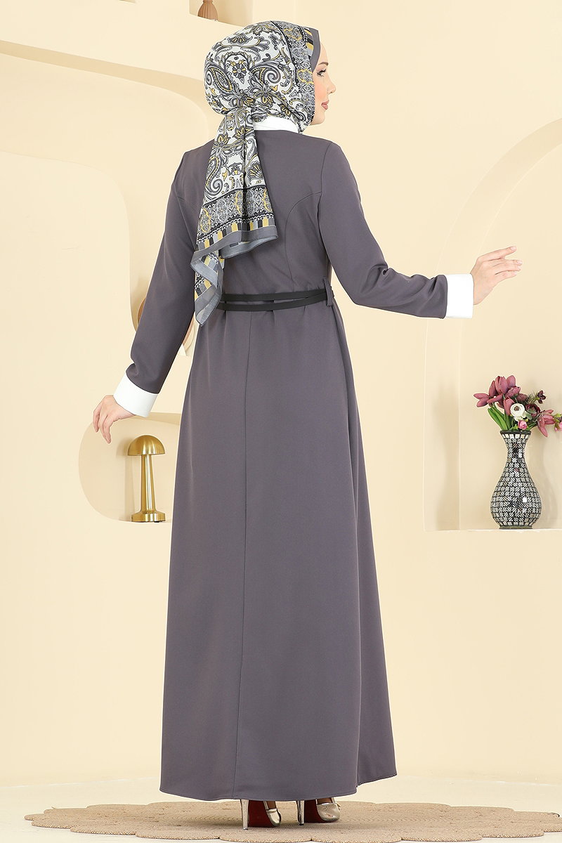 Gömlek Yaka Kemerli Elbise Antrasit