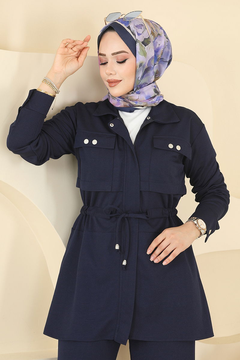 Ürün Özelliği : Yeni sezon tesettür moda ürünüdür. Beli bağcıklıdır. Ürün Gömlek yakadır. Astarsızdır. Ürün Önden fermuarlıdır. Cep mevcuttur. Pantolon beli lastiklidir.Konsept fotoğraf çekimlerinden dolayı üründe ton farklılığı olabilir.