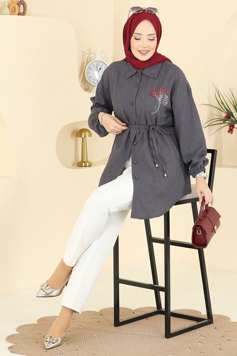 Gömlek Yaka Taşlı Tunik 2827SLK540 Antrasit
