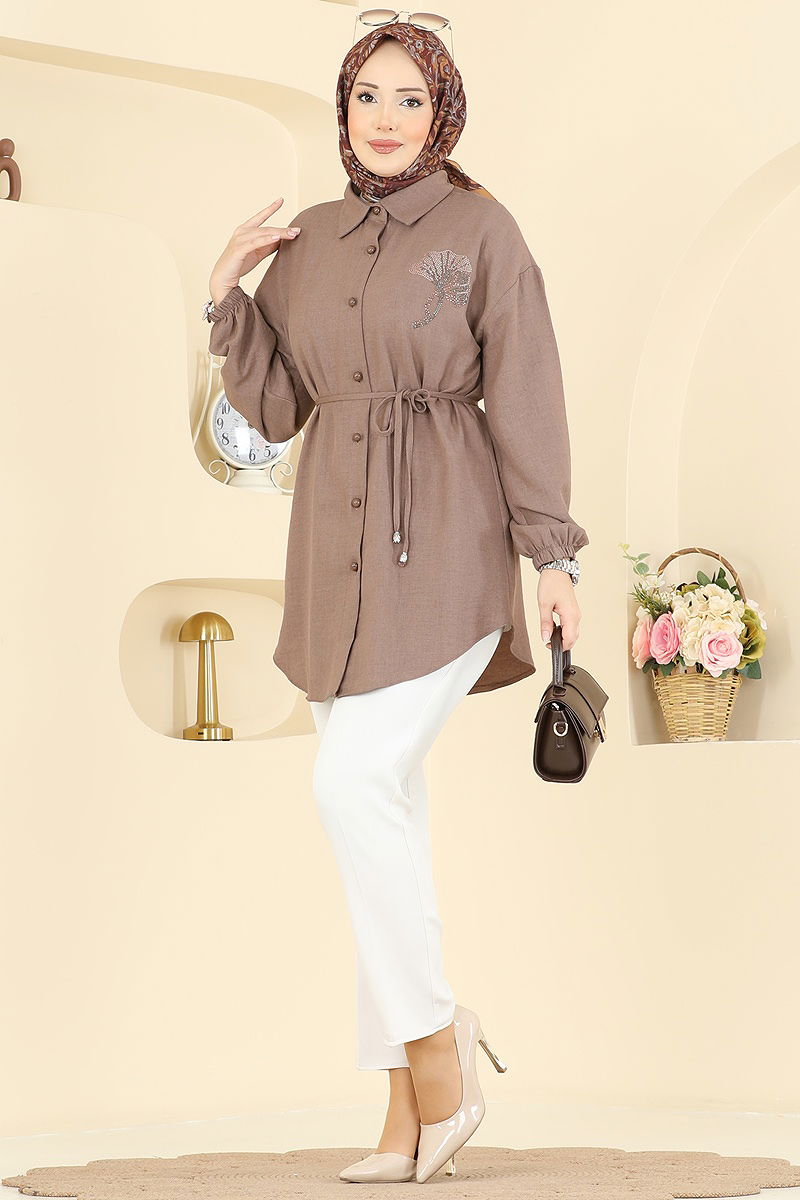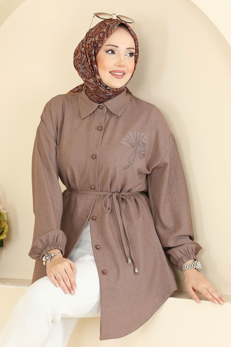 Gömlek Yaka Taşlı Tunik 2827SLK540 Vizyon