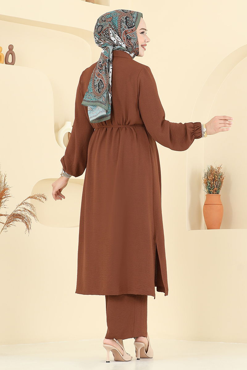 Ürün Özelliği : Yeni sezon tesettür moda ürünüdür. Ürün Gömlek yakadır. Ürün Gizli düğmelidir. Tunik yandan yırtmaçlıdır.. Astarsızdır. Bağcık ürüne dahildir, isteğe bağlı kullanılmayabilir. Pantolon beli lastiklidir. Manşet lastiklidir. Konsept fotoğraf çekimlerinden dolayı üründe ton farklılığı olabilir.