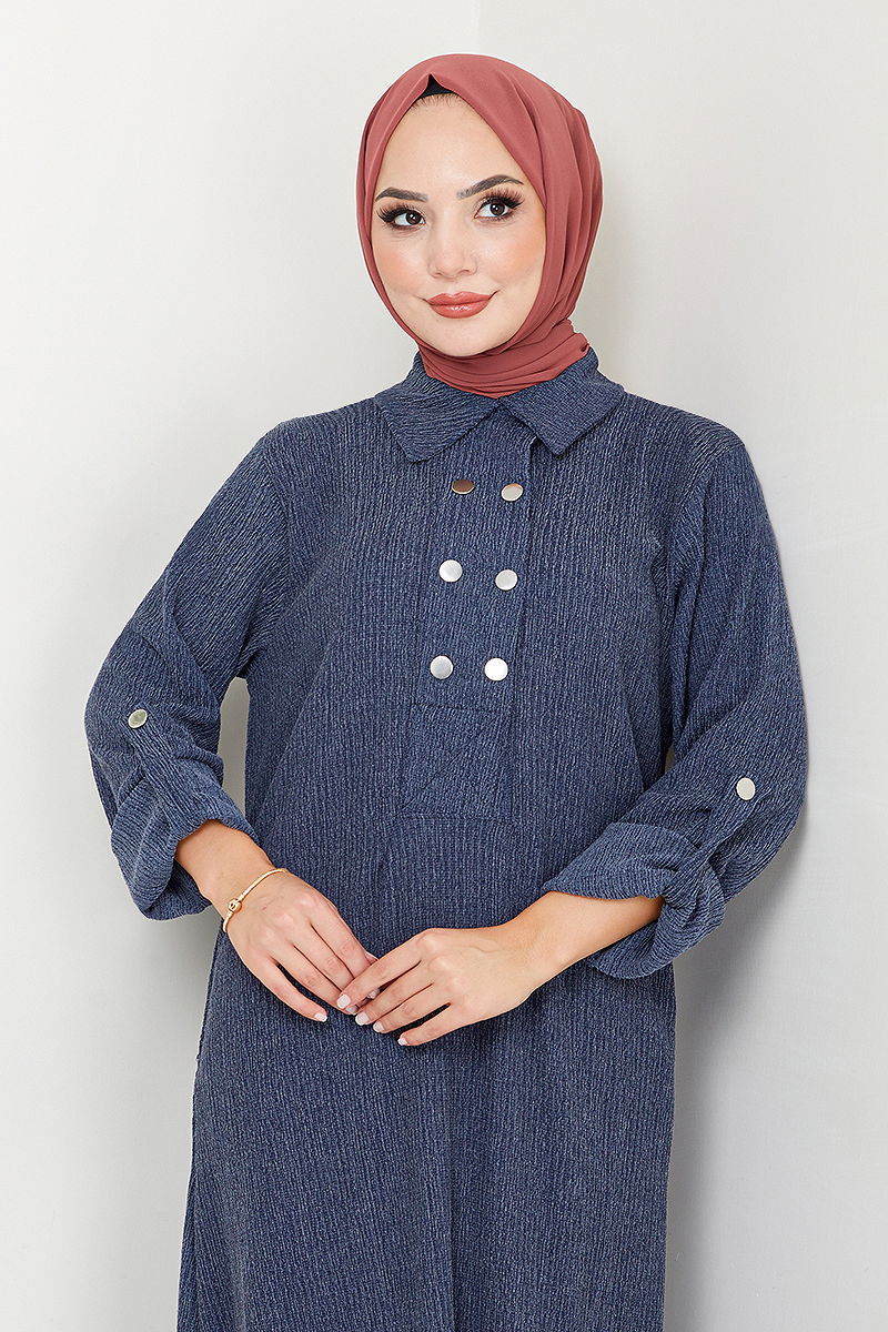 Gömlek Yakalı Bürümcük Elbise 2501HBS932-M İndigo