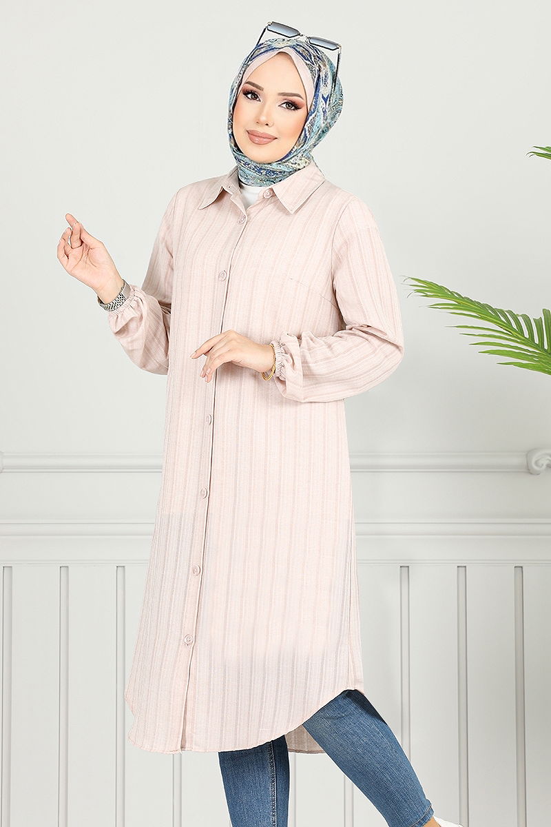 Gömlek Yakalı Tesettür Tunik 4448KTR927-M Taş