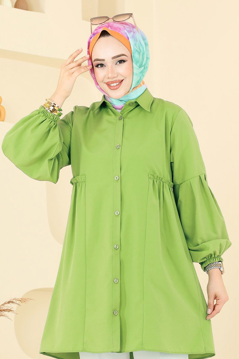 Gömlek Yakalı Tunik Yağ Yeşili