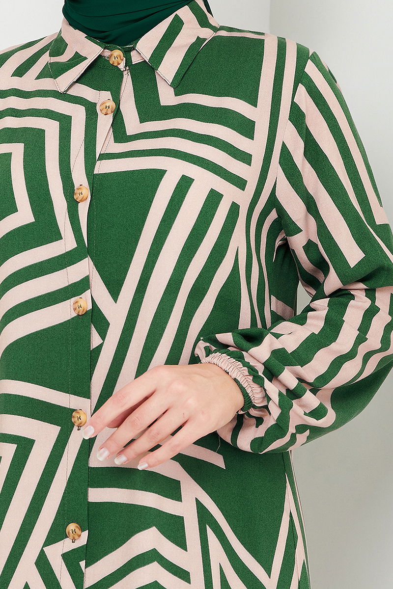 المنتج لديه ياقة القميص. المنتج به أزرار من الأمام. غير مبطنة.. السوار مطاطي. قد يكون هناك اختلاف في الدرجة اللونية في المنتج بسبب التقاط الصور الفوتوغرافية.