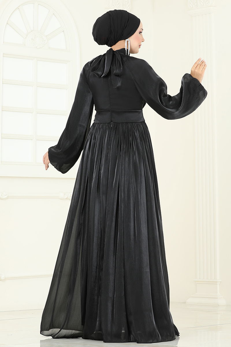 Gül Aksesuarlı Pliseli Abiye 5299D170 Siyah