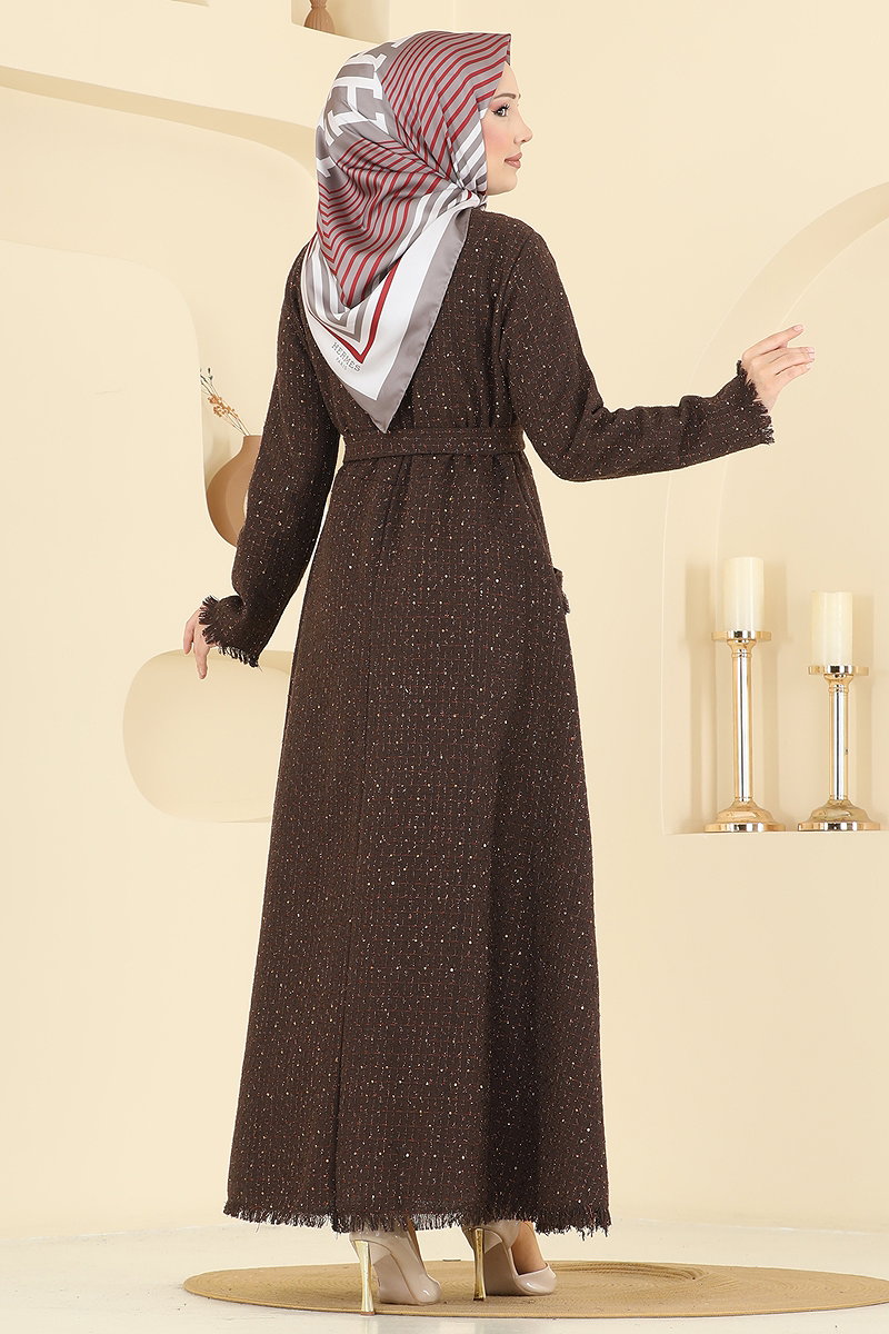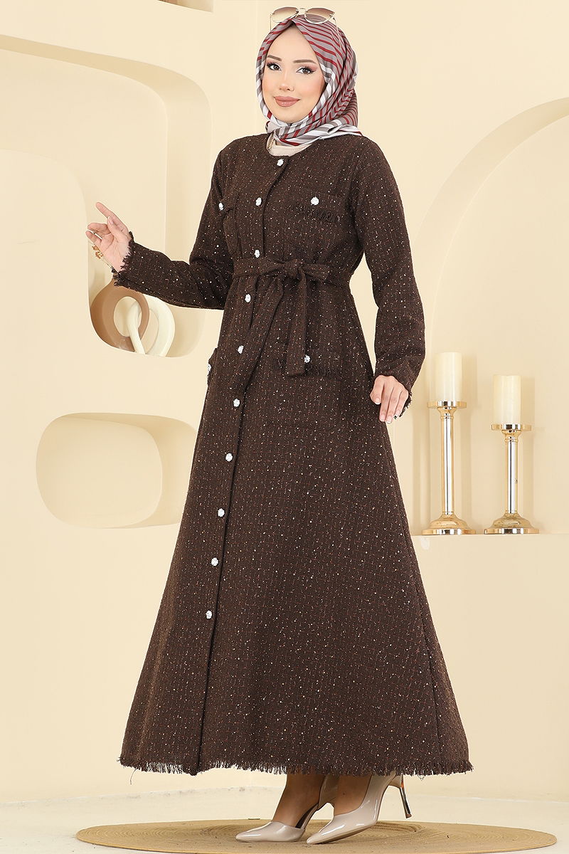 Gümüş Düğmeli Tüvit Elbise 2761SL432 Kahve