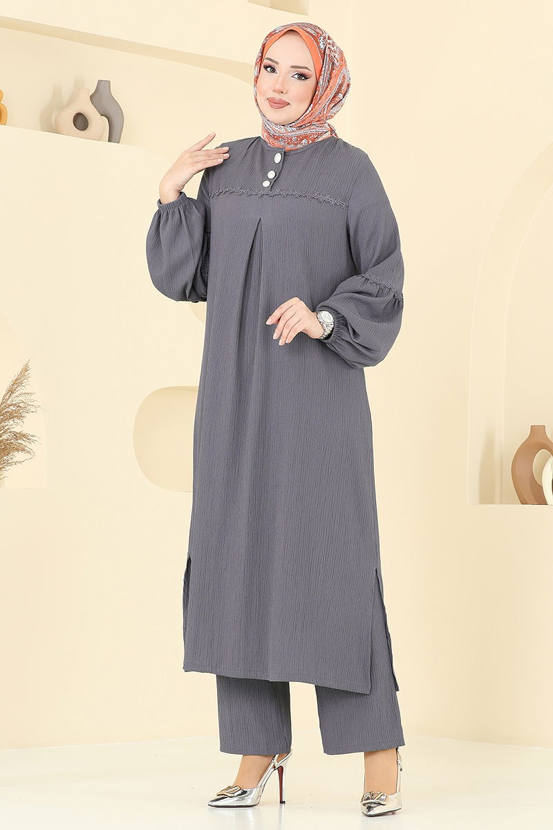Ürün Özelliği : Yeni sezon tesettür moda ürünüdür. Ürün kafadan giyilmektedir. Ürün Bisiklet yakadır. Ürün Önden kullanılabilir yarım düğmelidir. Tunik yandan yırtmaçlıdır.. Astarsızdır. Güpür detayı dikilidir. Ürün robalıdır. Pantolon beli lastiklidir. Manşet lastiklidir. Konsept fotoğraf çekimlerinden dolayı üründe ton farklılığı olabilir.