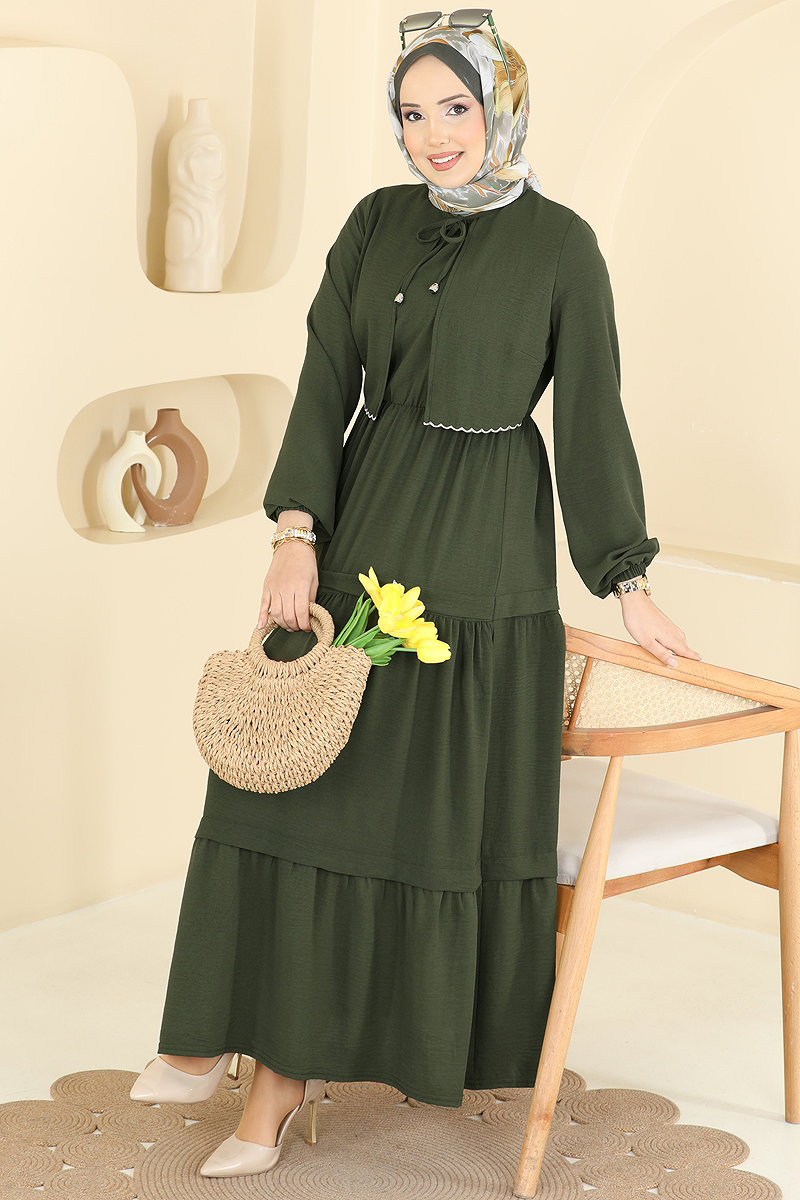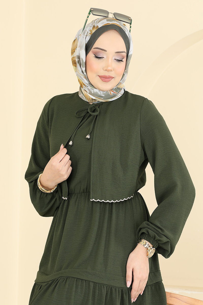 Güpür Detaylı Aerobin Elbise 2851SLK540 Haki