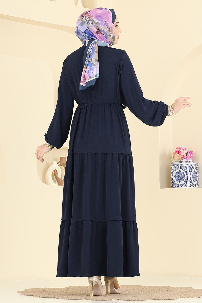 Güpür detaylı Aerobin Elbise, tesettür tarzını modern dokunuşlarla buluşturuyor. Dört mevsim giyilebilen bu elbise, 30 derecede hassas yıkama imkanı sunar. Aerobin kumaşı sayesinde hafif ve konforlu bir kullanım sağlar. Bisiklet yaka tasarımı ile şıklığına şıklık katan elbise, sırttan düğmeli yapısıyla pratik kullanım olanağı sağlar. Astarsız yapısı ve manşeti lastikli kollar, rahat hareket etme özgürlüğü sunar. Yaka bağcık detayı ile zarif bir görünüm tamamlanır.