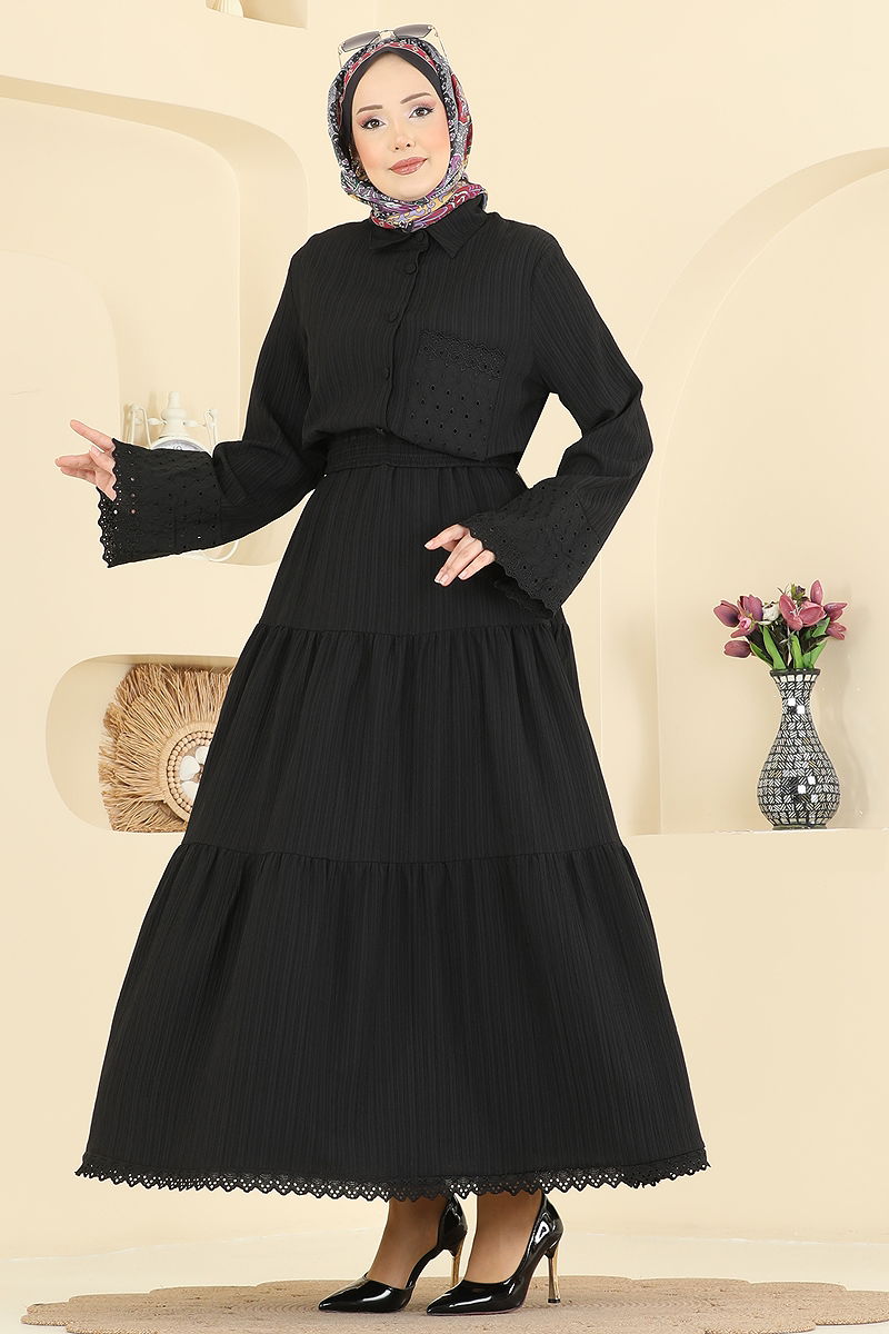 Güpür Detaylı Etekli Takım 328ASN888 Siyah