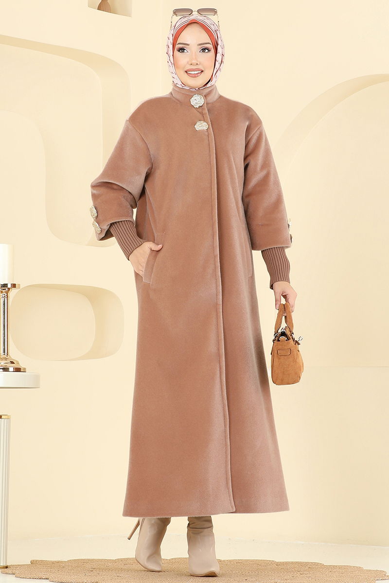 Sonbahar ve kış aylarınızı sıcacık geçirmenizi sağlayacak Hakim Yaka Angora Kaban ile şıklığınızı koruyun. Tesettür tarza uygun bu kaban, yüksek kaliteli angora kumaştan üretilmiştir. Hakim yakası ve zarif manşet düğmeleriyle dikkat çeken bu model, astarlıdır ve konfor sunar. Tüm güzelliği ile ön plandaki düğmeleri, hem fonksiyonel hem de dekoratif bir özelliktir. Bakımı ise oldukça kolay; sadece kuru temizleme yapılması önerilir. Kış aylarında hem sıcak kalın hem de zarif görünün.