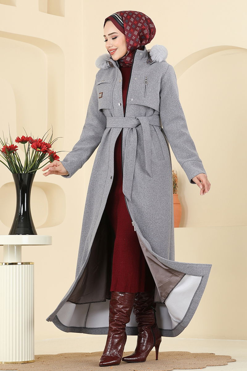 Hakim Yaka Kaşe Kaban Gri