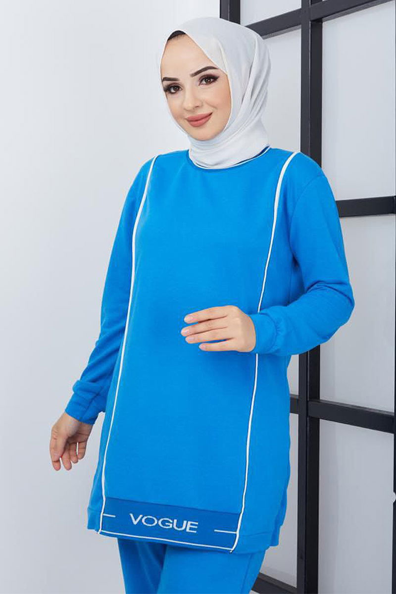 طقم حجاب مزدوج أزرق