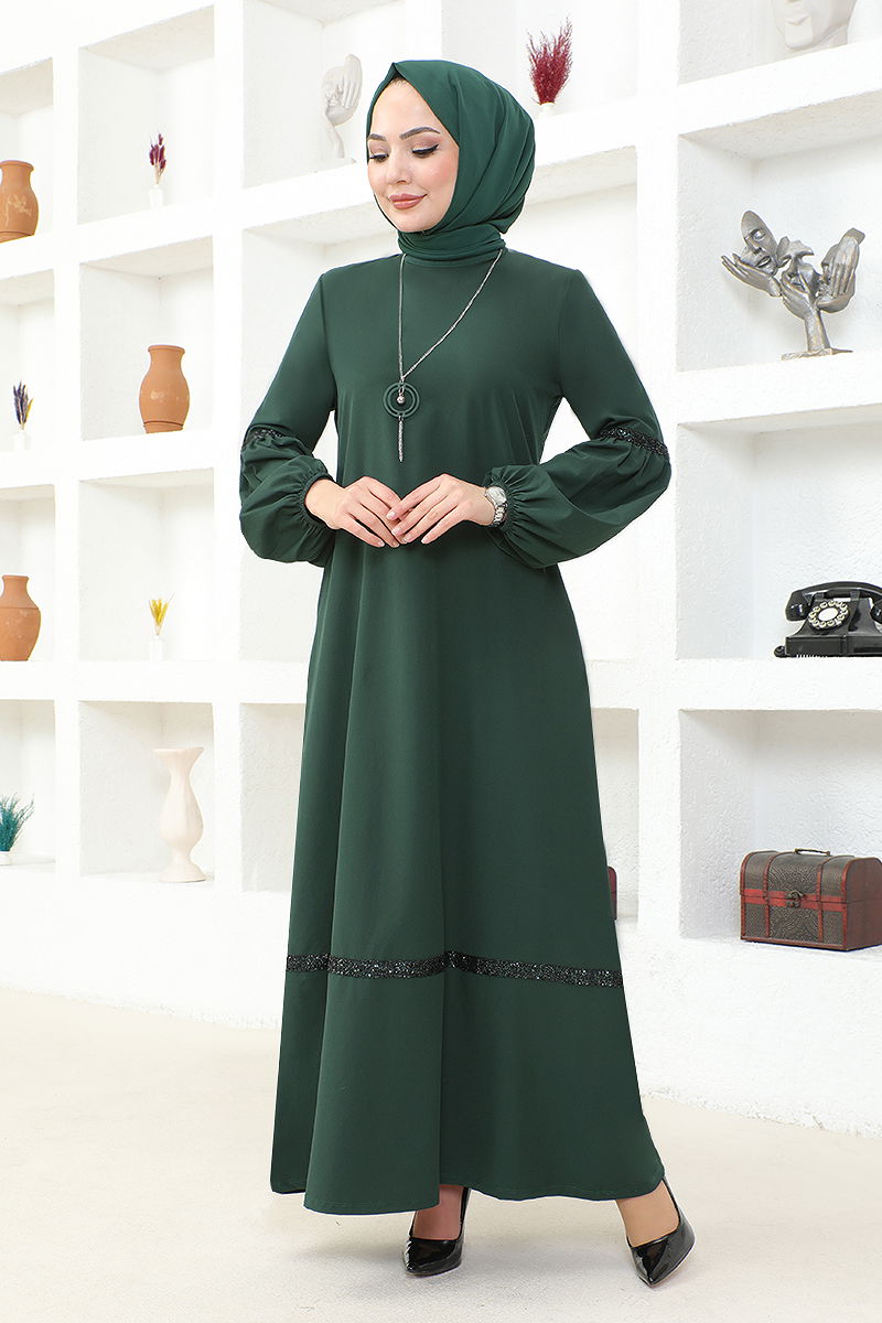 Hijab Dress with Necklace ASM2676-M Emerald