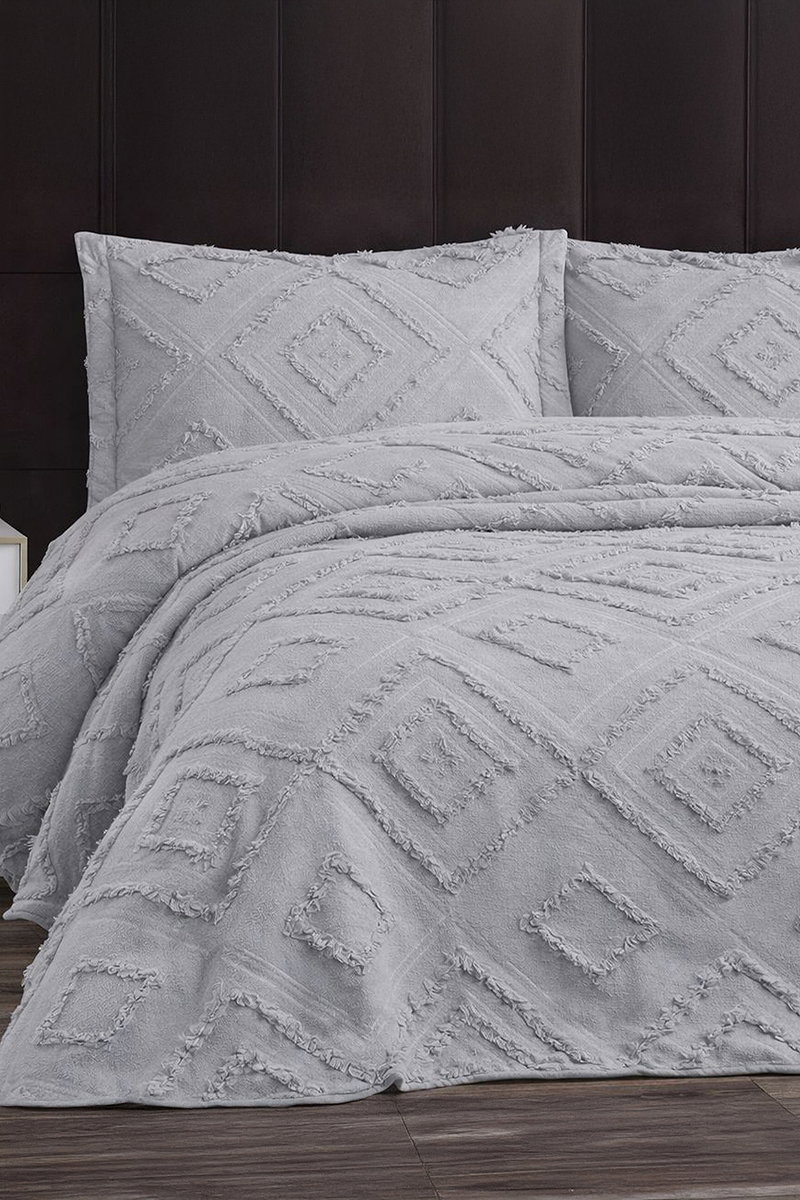 Experience elegance and comfort in your bedroom with the Triangle Patterned Bedspread Set from EV&YAŞAM, suitable for all seasons and designed for delicate washing. This set is crafted from premium jacquard fabric and includes a 235x240 cm bedsheet, a 60x80 cm decorative pillow cover, a 50x70 cm pillow, and a 240x260 cm bedspread. The high-quality materials and exquisite design enrich your home décor while offering a sublime sleep experience with its soft texture. It is designed for durability with features that support washing at 30 degrees on a delicate cycle.