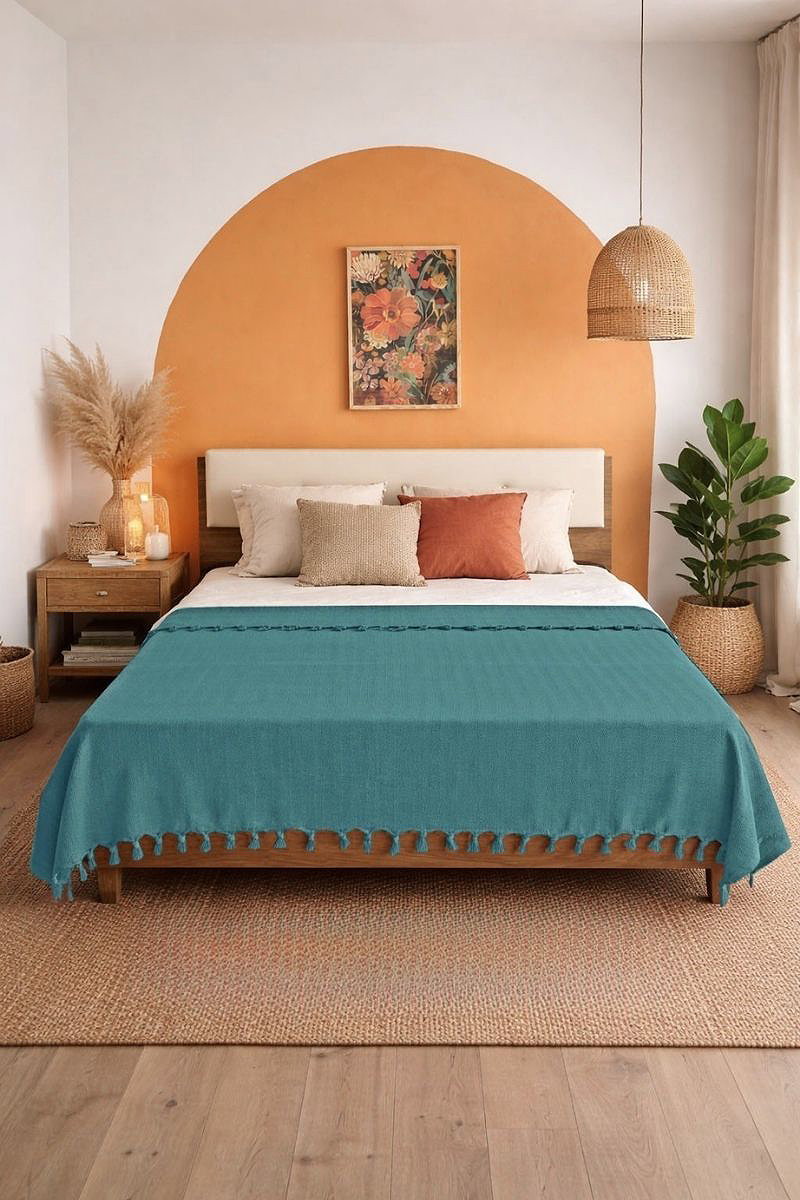 The Cotton Double Bedspread 1EV&YAŞAM model is a special modest wear product that can be comfortably used throughout all four seasons. It can be washed at 30 degrees on a delicate cycle and is made from cotton fabric. All complementary components must be returned complete, in their original packaging, and unwashed. The bedspread measures 200 x 230 cm and is suitable for double beds.