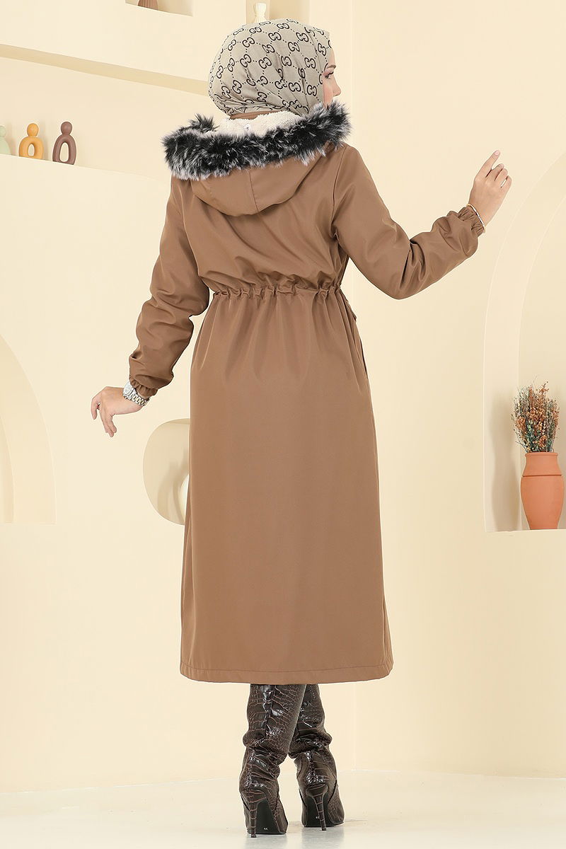 Ürün Özelliği : Yeni sezon tesettür moda ürünüdür. Beli bağcıklıdır. Kapüşon seyyardır, isteğe bağlı kullanılmayabilir. Ürün Kapşonlu yakadır. İçi Kürklüdür.. Ürün Önden fermuarlıdır. Cep mevcuttur. Manşeti lastiklidir. Konsept fotoğraf çekimlerinden dolayı üründe ton farklılığı olabilir.