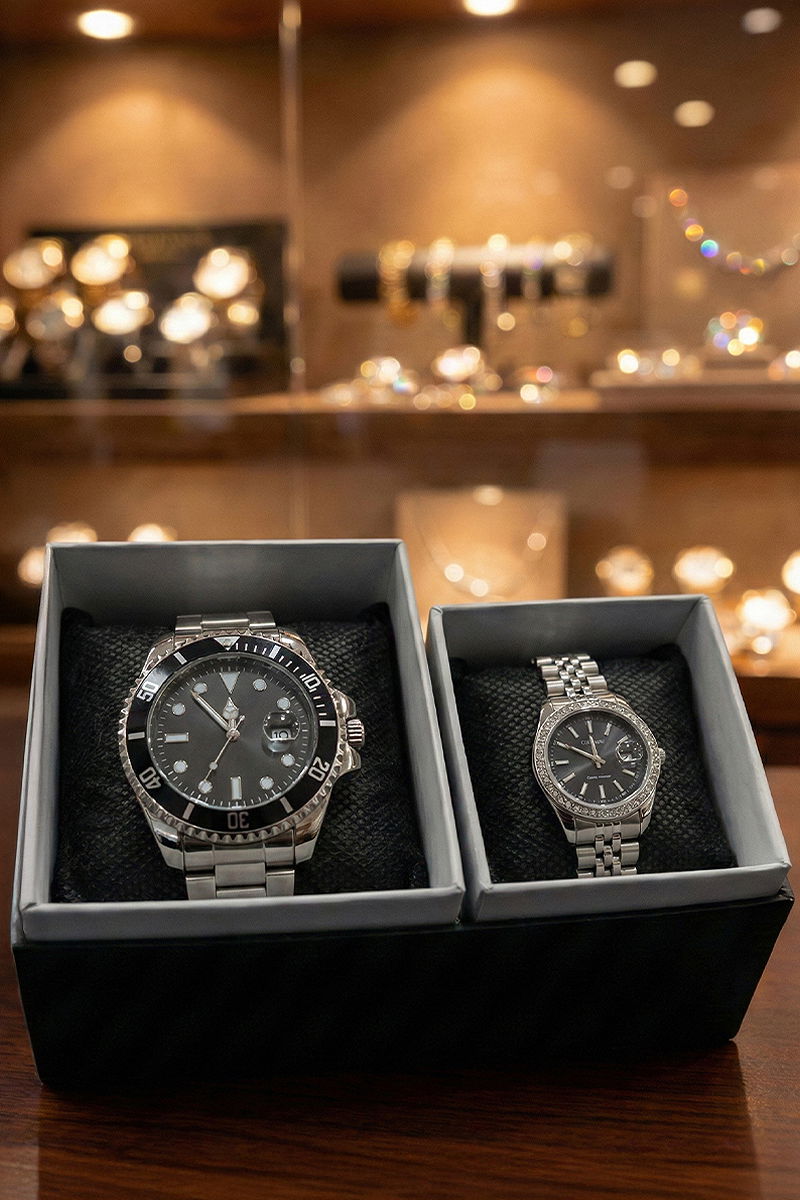 İçi Siyah Çift Kol Saati Gümüş