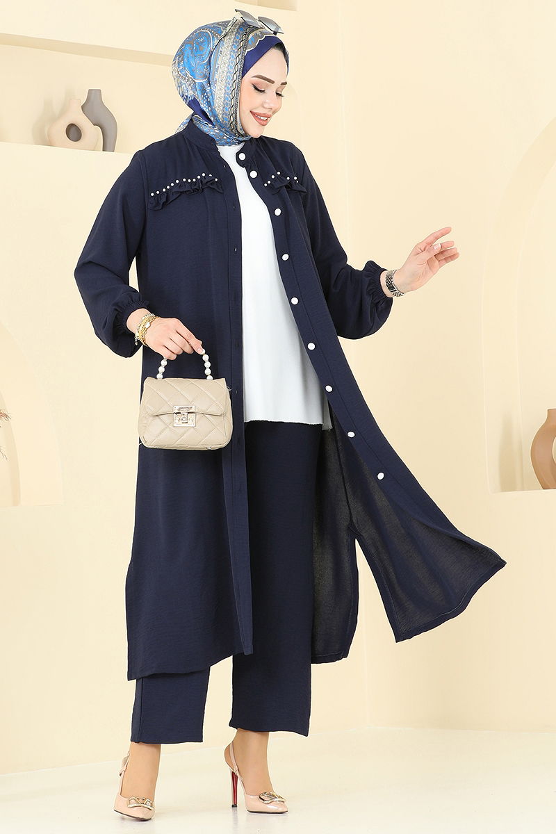 Ürün Özelliği : Yeni sezon tesettür moda ürünüdür. Ürün Yarım Hakim yakadır. Ürün Önden düğmelidir. Tunik yandan yırtmaçlıdır.. Astarsızdır. İnci detayları çakımdır. Bluz ürüne dahil değildir. Ürün kullanım amacını göstermek için bluz ile örnek kombin yapılmıştır. Pantolon beli lastiklidir. Manşeti lastiklidir. Konsept fotoğraf çekimlerinden dolayı üründe ton farklılığı olabilir.