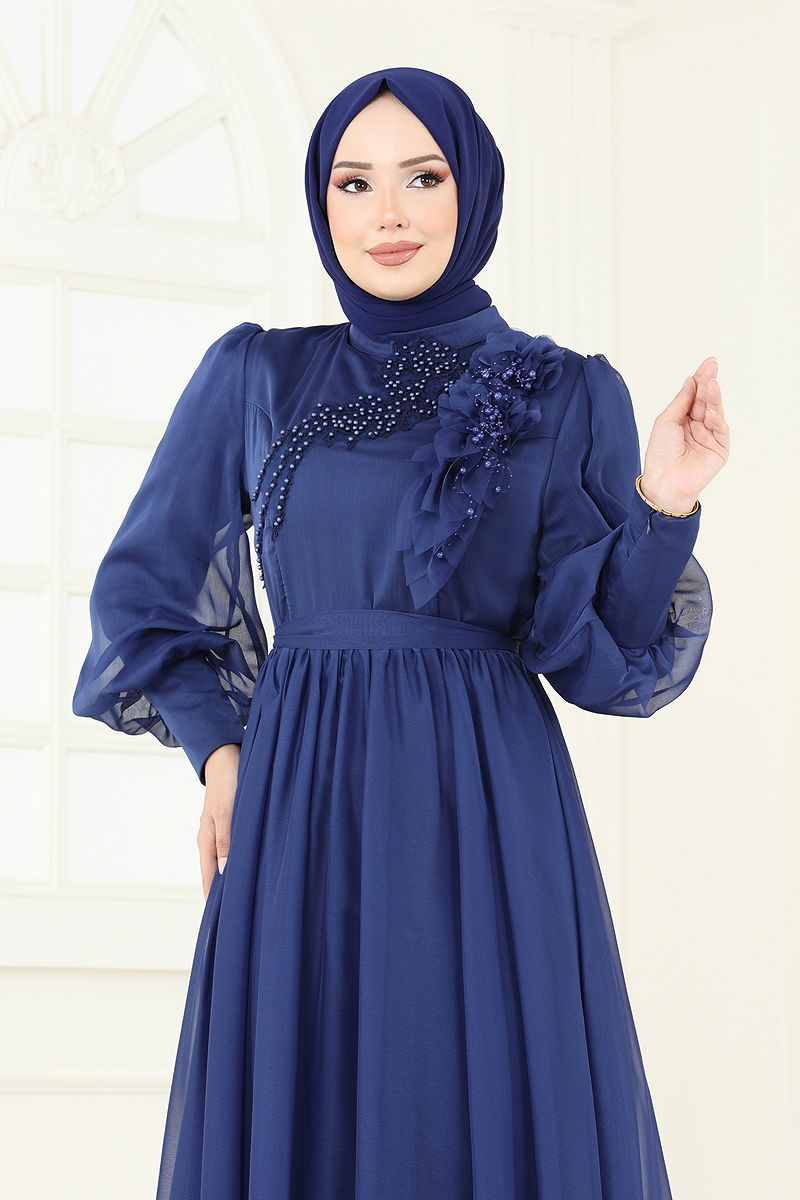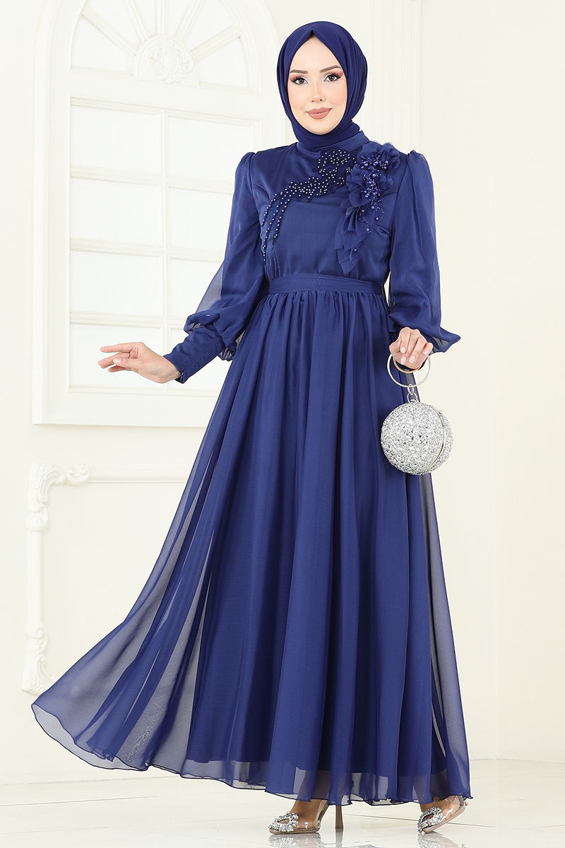 İnci Detay Janjan Abiye, model tesettür ürünüdür ve dört mevsim sezonunda kullanılabilir. Sadece kuru temizleme ile temizlenmeli olan bu özel abiye, janjan kumaştan üretilmiştir. Hakim yaka ve astarlı yapıya sahiptir. Sırttan fermuarlı olan ürün, güpür ve inci detayları ile göz alıcı bir zarafet sunar. Ürün beli dikişli olup, kemer ürüne dahildir ancak isteğe bağlı kullanılmayabilir. Manşetler aktif fermuarlıdır ve kemerin dalgalanmaması için dikilmiş iki ucu ile tasarlanmıştır. (Modelin üzerindeki ürün 38 bedendir. Boy: 165 cm, Göğüs: 80 cm, Bel: 68 cm, Basen: 96 cm, Kilo: 54 kg.)