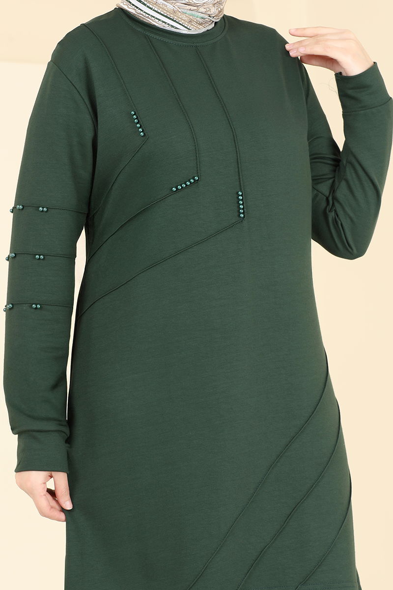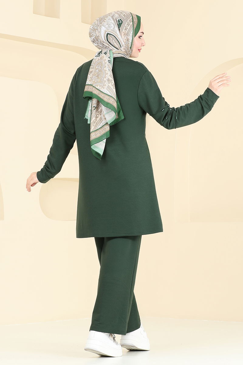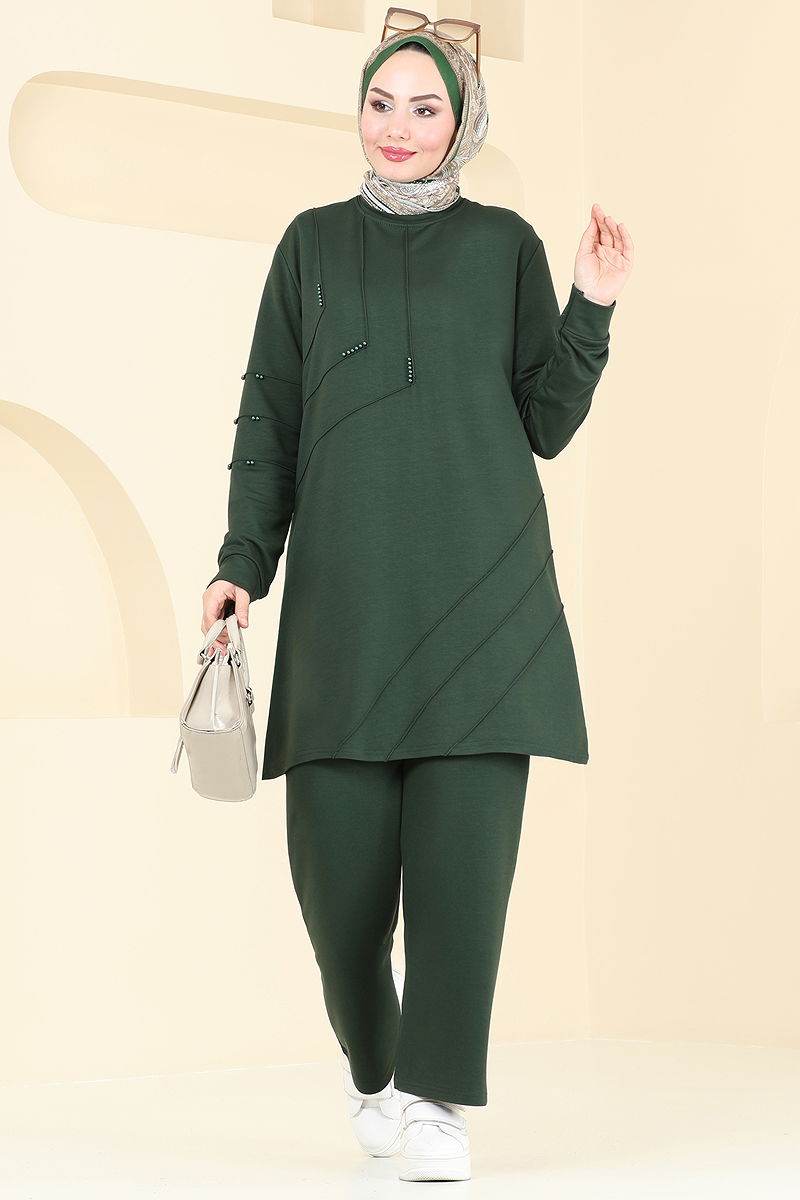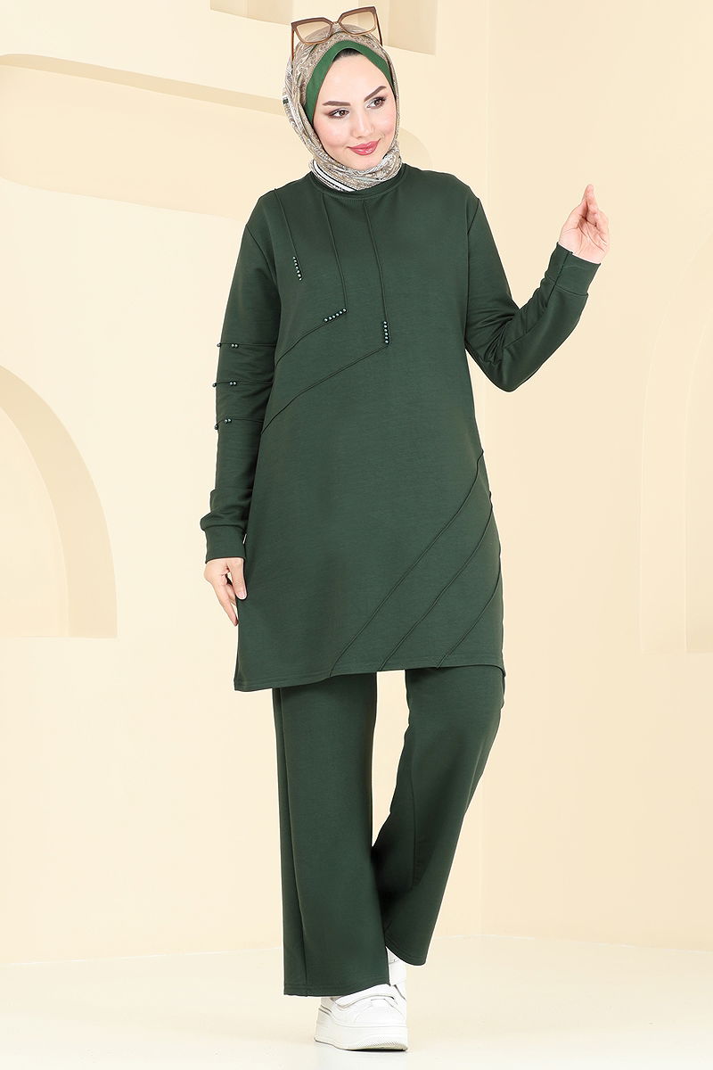 Ürün Özelliği : Yeni sezon tesettür moda ürünüdür. Ürün Bisiklet yakadır. Astarsızdır. İnci detayları dikilidir. Pantolon beli lastiklidir. Konsept fotoğraf çekimlerinden dolayı üründe ton farklılığı olabilir.