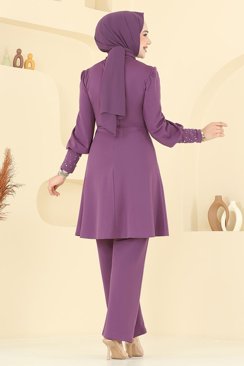İnci Detay Tesettür Takım ASM2809 Koyu Lila