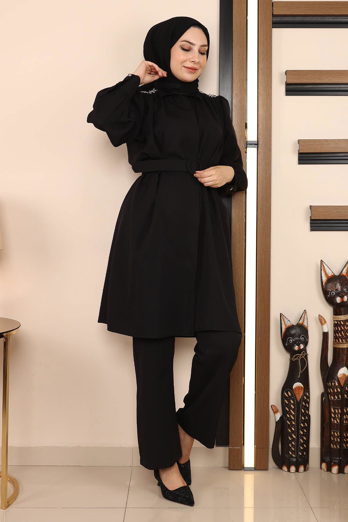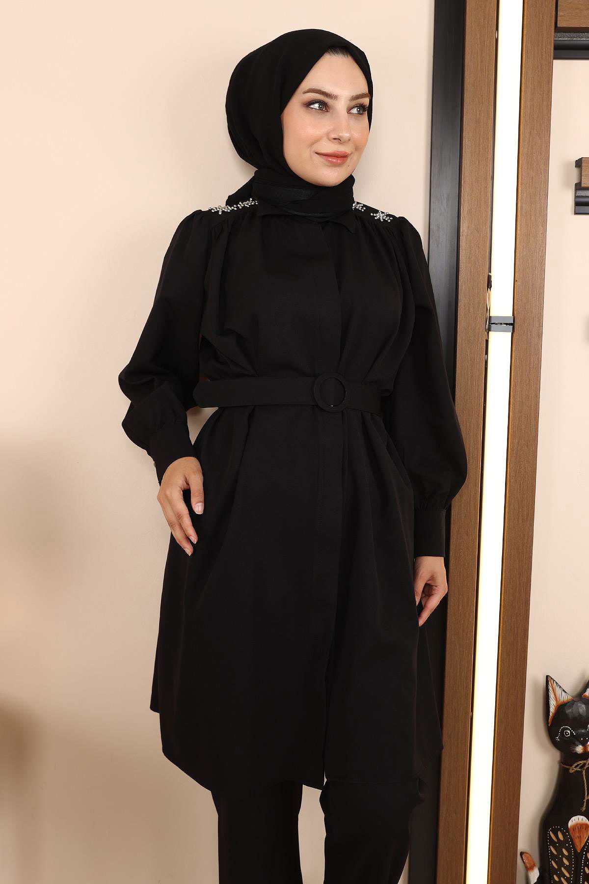 İnci Detaylı Kombin Siyah