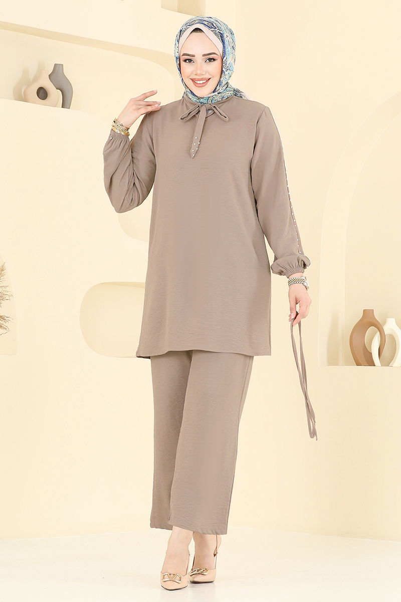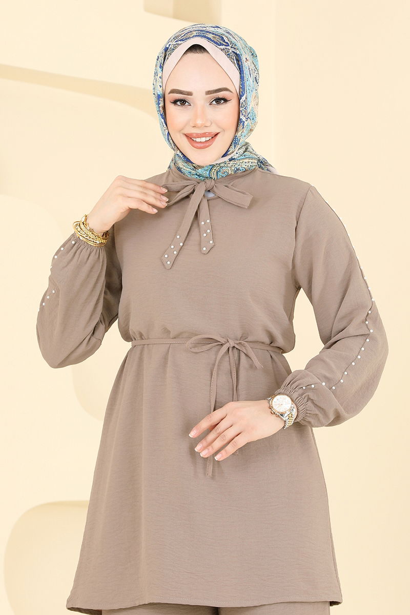 Ürün Özelliği : Yeni sezon tesettür moda ürünüdür. Ürün kafadan giyilmektedir. Ürün Fular yakadır. Astarsızdır. İnci detayları çakımdır. Kemer ürüne dahildir, isteğe bağlı kullanılmayabilir. Pantolon beli lastiklidir. Manşet lastiklidir. Konsept fotoğraf çekimlerinden dolayı üründe ton farklılığı olabilir.