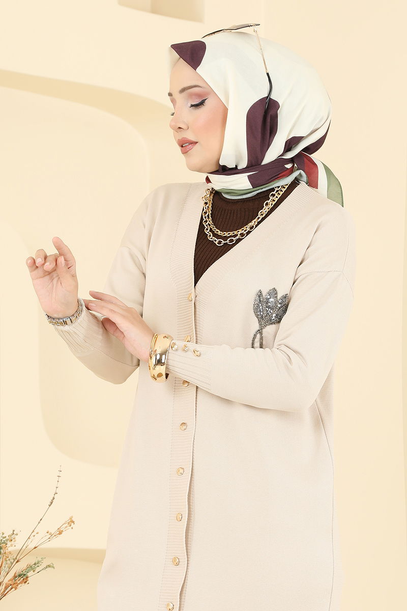 İşleme Detaylı Merserize Hırka 3260BRZ597 Taş