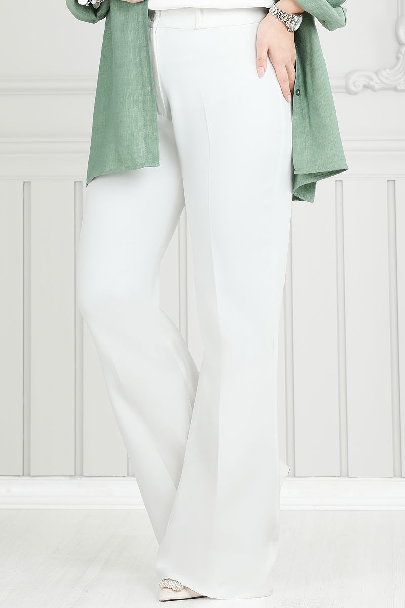 İspanyol paça tasarımıyla modern ve şık bir görünüm sunan bu pantolon, tesettür giyim tarzını benimseyenler için ideal bir seçimdir. Dört mevsim rahatlıkla kullanabileceğiniz bu ürün, 30 derecede hassas yıkama ile temizlenebilir. Dayanıklı ve yumuşak Dabıl kumaştan üretilmiştir. Astarsız yapısı ile hafif ve konforlu bir kullanım sağlar. Önden düğmeli ve fermuarlı tasarımı pratik bir kullanım sunar. Model üzerinde görülen ürün 38 bedendir.