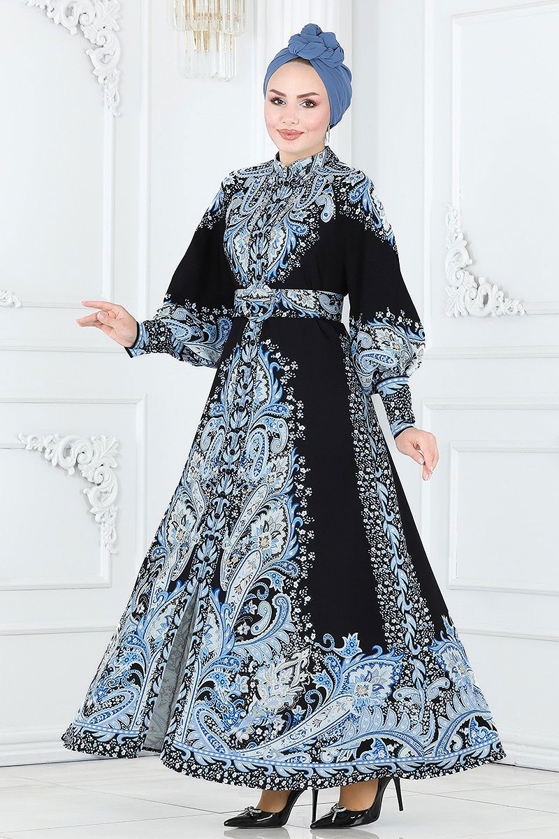 Kaplama Kemerli Atlas Elbise Siyah&Mavi Özellikleri