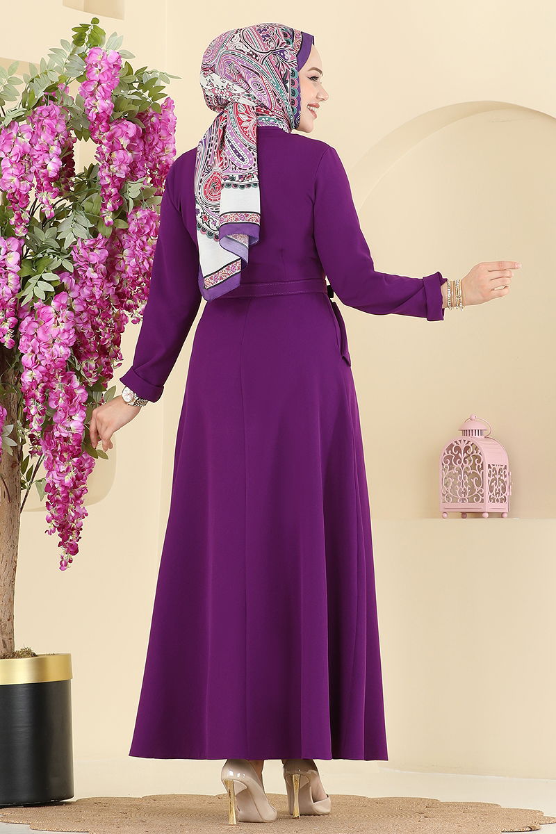 Kaplama Kemerli Dabıl Elbise, zarafet ve konforu bir araya getiren bir tesettür modası ürünüdür. Dokuma Dabıl kumaşından imal edilmiş olan bu elbise, 30 derecede hassas yıkama ile temizlenebilir. Ürünün bisiklet yakası ve astarsız tasarımı şıklığına şıklık katarken, sırttan fermuarlı oluşu kullanım kolaylığı sağlar. Beli şık bir dikişle vurgulanmış, kemer ise dalgalanmayı önlemek için özel olarak tasarlanmıştır. Kemer, kullanımı tercihe bağlı olacak şekilde elbise ile birlikte verilmektedir. Ayrıca, elbisede pratik kullanım için cebi bulunmaktadır.