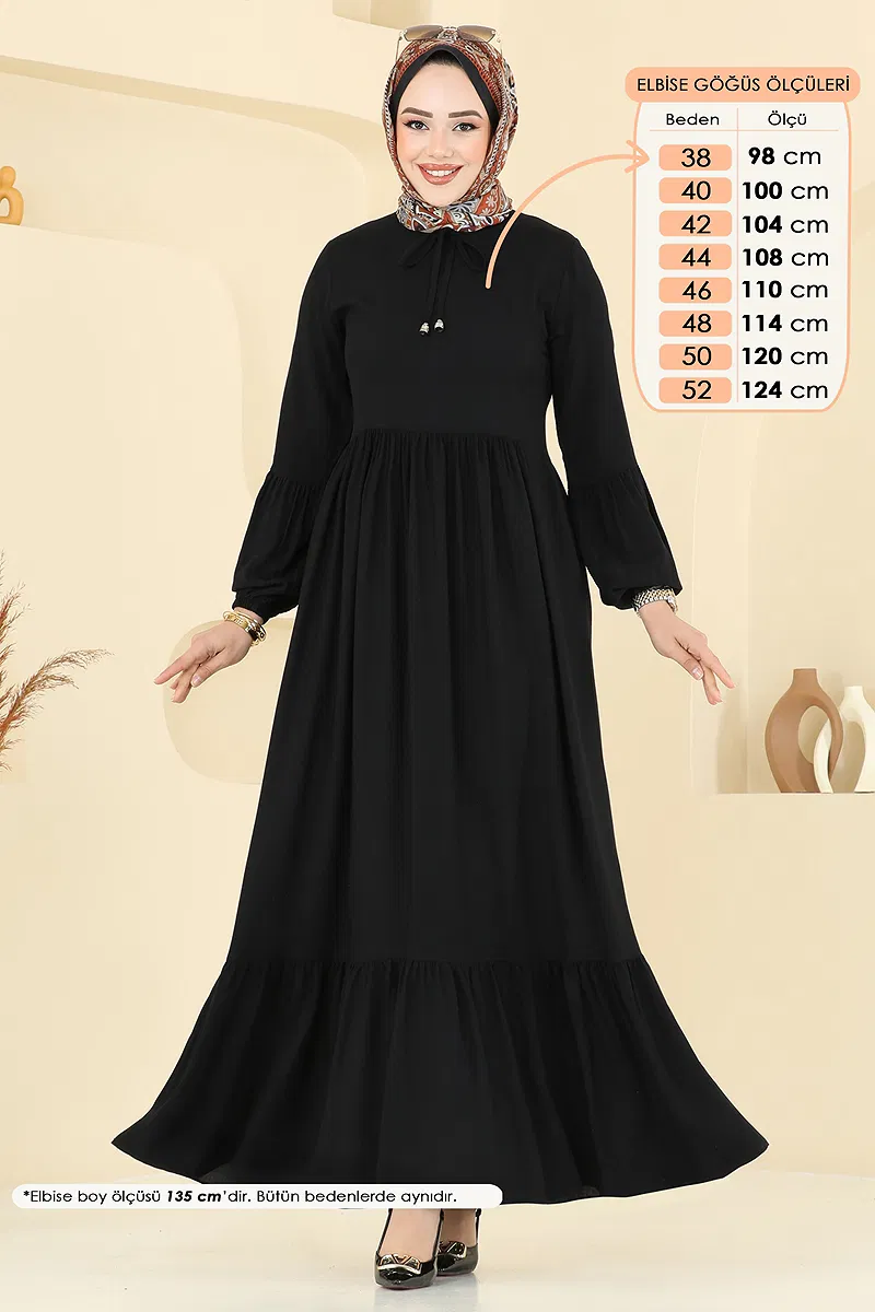 Modelin Ölçüleri: Boy: 165 cm, Göğüs: 88 cm, Bel: 68 cm, Basen: 99 cm, Kilo: 56 kg.