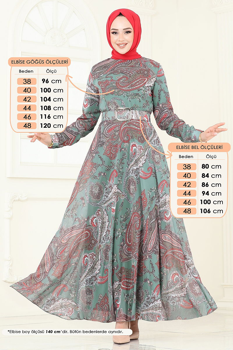 Kaplama Kemerli Şifon Elbise 204AL357 Mint