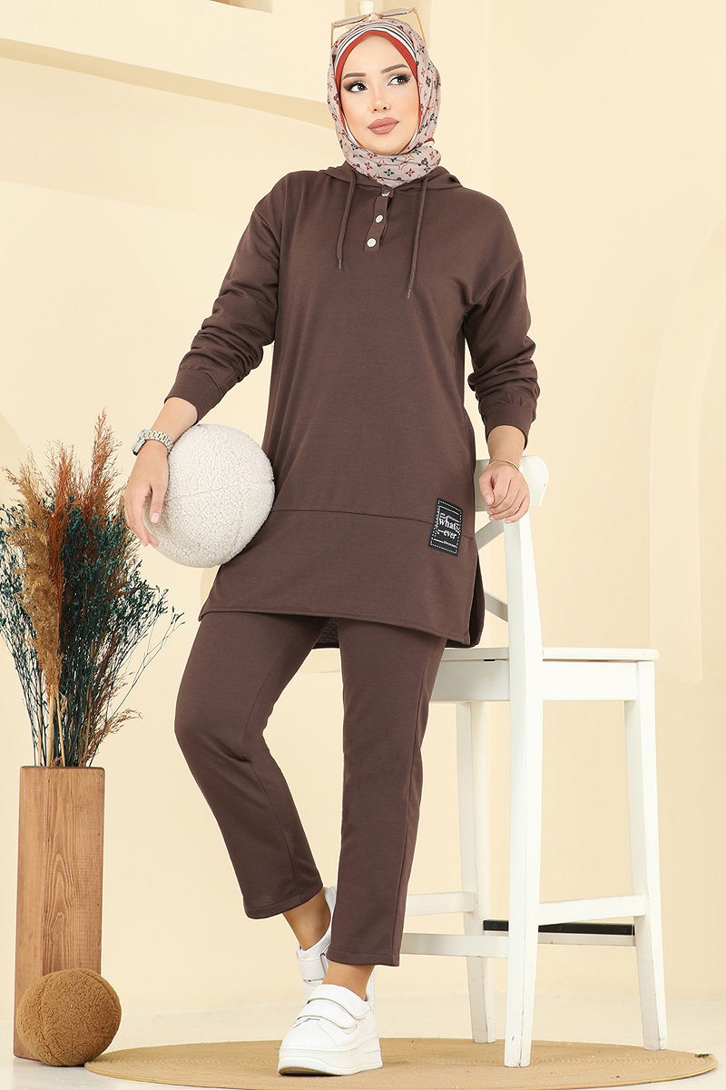 Kapşon Detaylı İki İp Takım Kahve