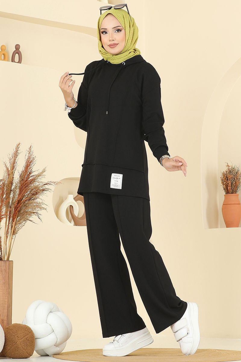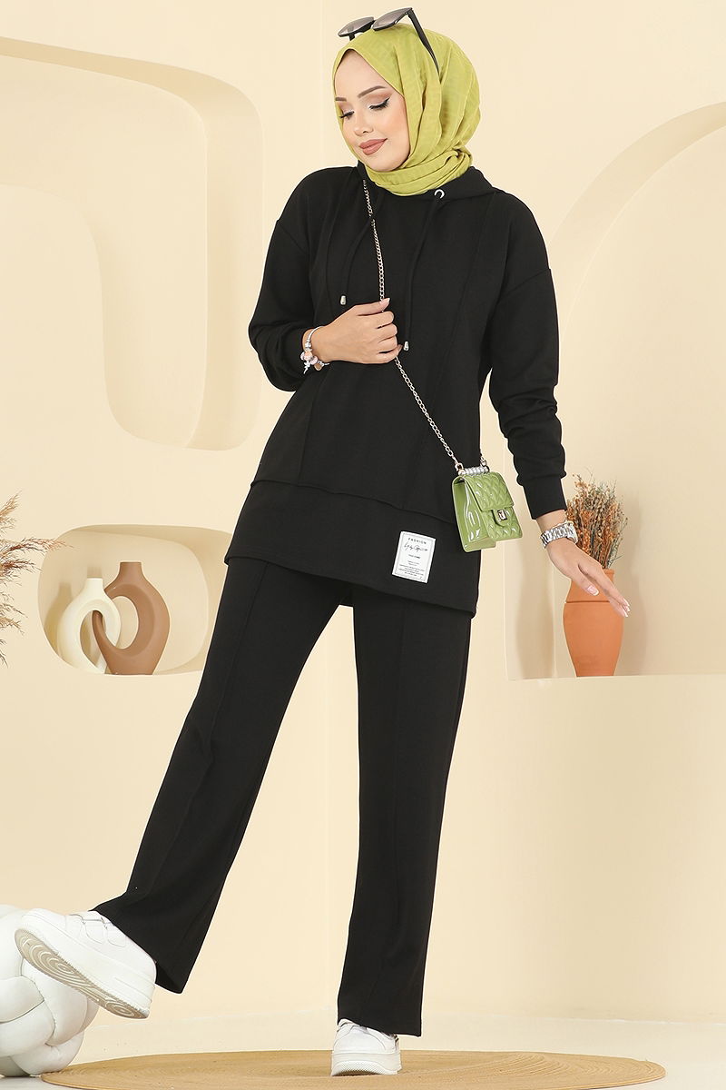 Kapşon Detaylı Modal Takım Siyah