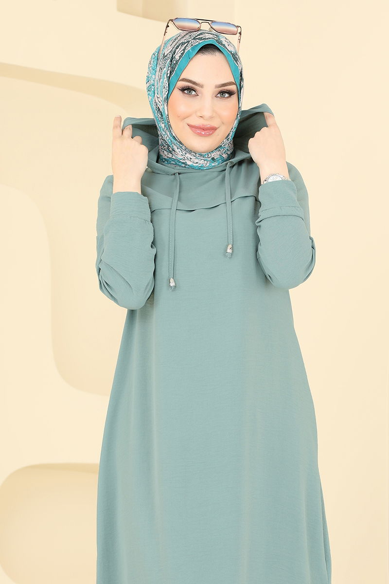 Product Feature : It is a new season hijab fashion product. The tunic has a side slash.. Unlined. The hood is sewn to the product. The waist of the trousers is elastic. There may be a tonal difference in the product due to concept photo shoots.
