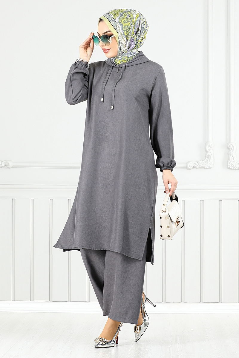 Kapşonlu Keten Takım 824OZR1047-M Antrasit