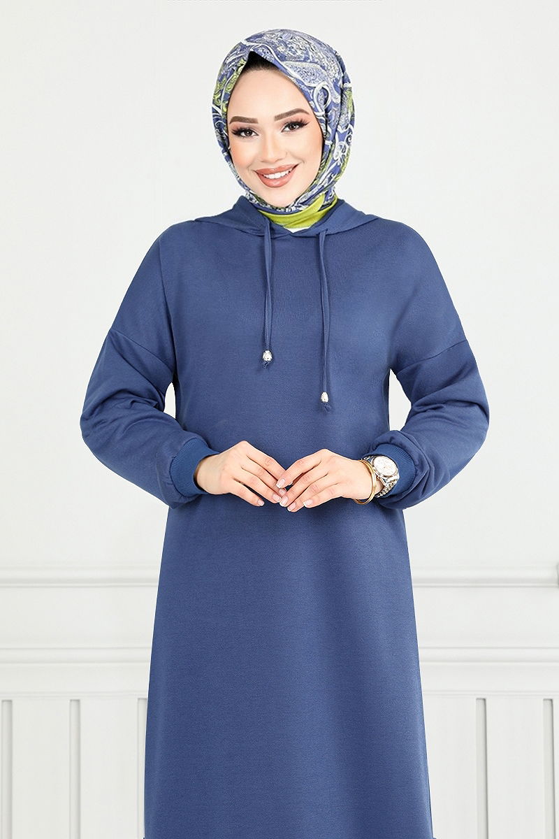 Kapşonlu Spor Elbise, rahatlık ve şıklığı bir arada sunan modern bir tesettür giysisidir. Dört mevsim boyunca rahatça kullanabileceğiniz bu elbise, 30 derecede hassas yıkama ile temizlenebilir. İki iplik kumaştan üretilmiş olan bu model, kapşonlu tasarımı ve arma detayı ile dikkat çekmektedir. Üzerindeki 38 beden örnek model ile fit görünümünü canlı tutar. Astarsız yapısıyla hafif ve konforlu bir kullanım sunar.