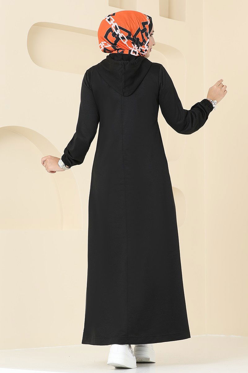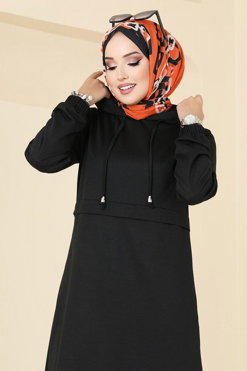 Kapşonlu Spor Elbise modeli tesettür ürünüdür. Dört Mevsim sezonunda kullanılabilir. 30 derecede sıkma yapılmadan yıkanmalıdır. Birinci sınıf İki İplik kumaştan imal edilmiştir. Ürün Kapşonlu yakadır. Astarsızdır. (Modelin üzerindeki ürün 38 bedendir.) Kapşon ürüne dikilidir. Manşet lastiklidir.