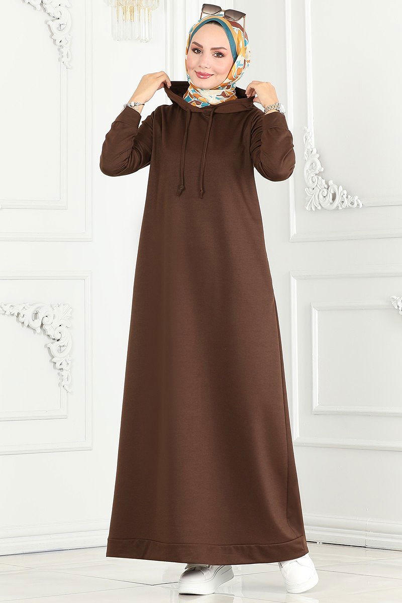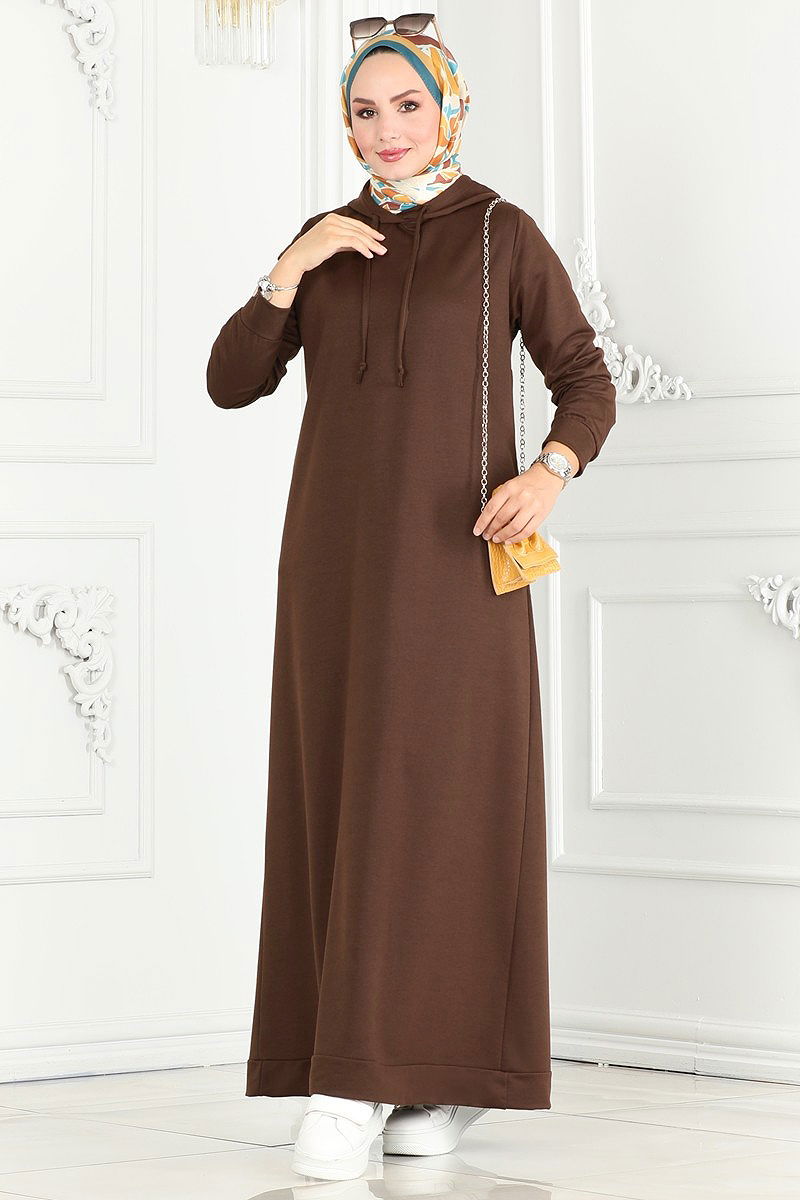 Kapşonlu Spor Elbise Kahve